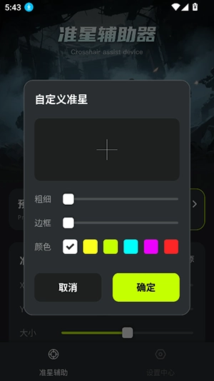 3、然后选择自定义准星,选择边框颜色,粗细等,点击确定。