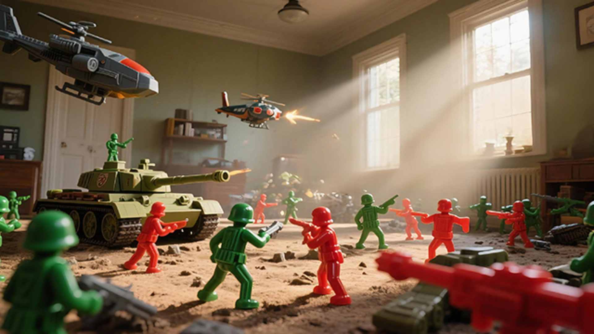 每当屋主离开房间,那些被遗落在角落、散落在沙盘,乃至塞在沙发缝隙里的玩具战士们,就会悄然苏醒。它们为了争夺地盘、获取荣誉,又或者仅仅是为了证明自己所属的“绿色小队”是最强的,纷纷投入到一场场激烈至极、充满奇思妙想的微型战争之中!