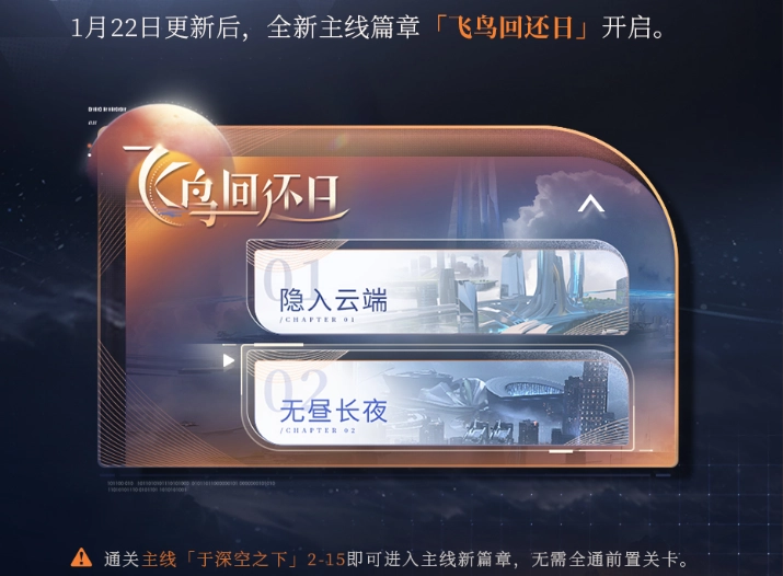 1、【主线剧情更新】飞鸟回还,细数历历在目的珍贵回忆,一起奔向重逢之后的未来。