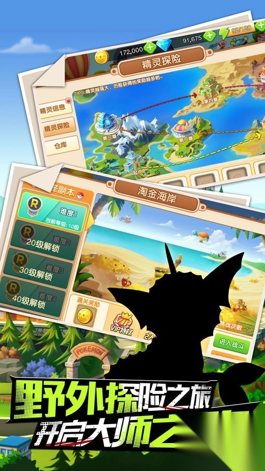 上千种精灵等你捕获,通过丰富多元的方式培养,打造地表最强精灵战队,探索神奇精灵的广袤世界。