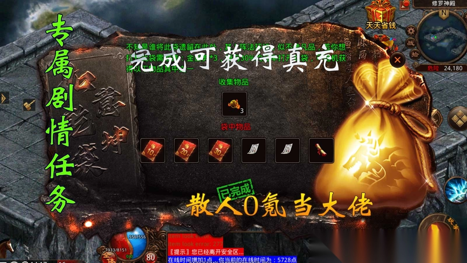 2、游戏以打金作为核心特色,玩家可借助游戏内的活动来获取收益,进而提升游戏的经济价值与吸引力。
