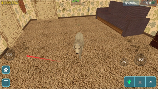 6、所购宠物可在“我的宠物”中查看,点击对应宠物后,通过左右移动来选择放置位置,接着点击“USE”键就能完成放置。