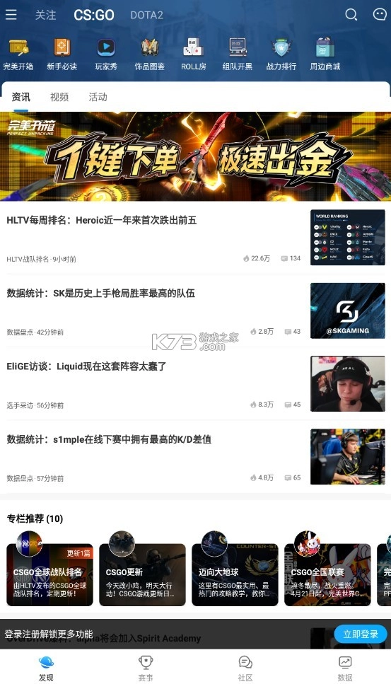 发现: 在“发现”功能下,用户可以探索各种电竞相关内容,包括最新的赛事资讯、社区讨论、精彩的开箱报告以及更多有趣的内容。