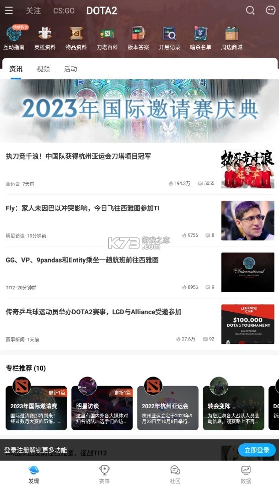 刀塔玩家等待了两年的狂欢,TI10 10月7日开战!【新增】DOTA2赛事功能上线,快来APP一起看TI!【新增】职业比赛完美时刻自动生成,今天哪位选手暴走了呢?【新增】TI应援活动即将上线,拥有自己的TI0战队徽章!【新增】TI预测活动即将上线,一念之差,胜负之间!【优化】CSGO广场开黑功能交互体验优