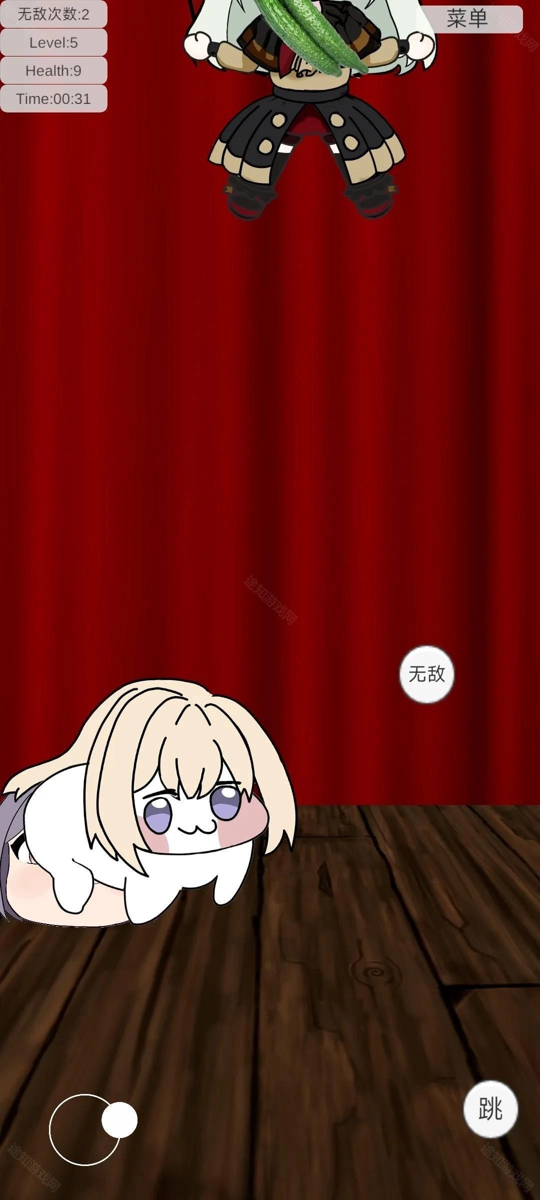 2. 左侧轮盘用于操控角色移动,右侧设有跳跃键与无敌键。