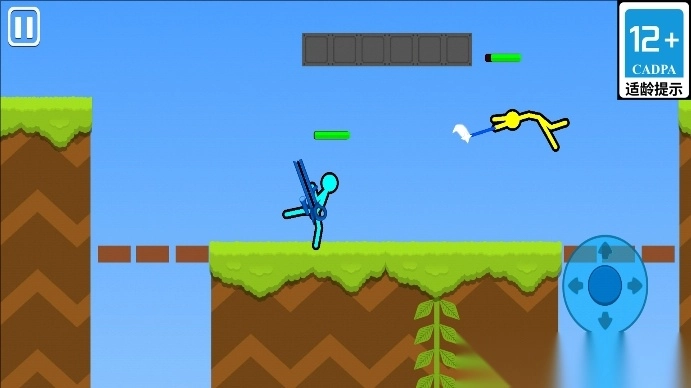 2、拾取随机武器挥砍或投掷,消耗对手体力至归零。