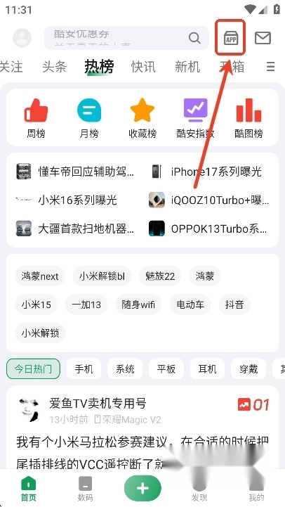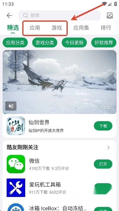 用户们可以点击首页右上角的app图标,进入酷安应用商店