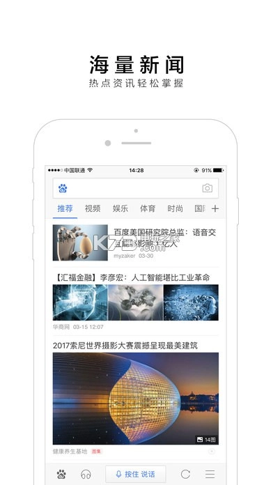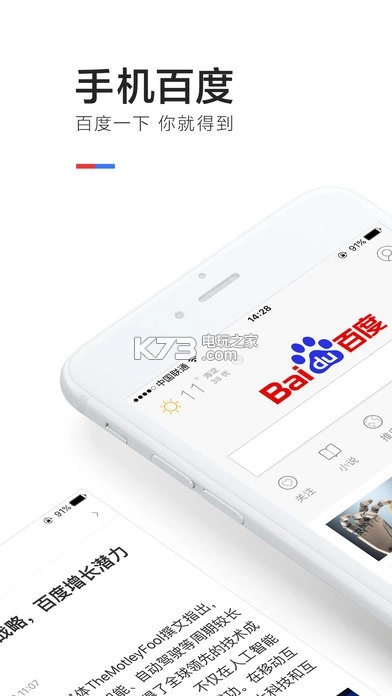 手机百度日活过亿,是国内活跃用户TOP3的APP,依托百度家族深耕多年的独有资源及强大技术优势,改变传统人“搜索”资讯的模式,海量新闻热点头条为您个性推荐,智能算法一触即达,让您的生活简单高效。