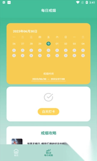 2、通过在线进行每日戒烟打卡,以此来帮助养成良好的习惯,也能表明个人的戒烟的决心。