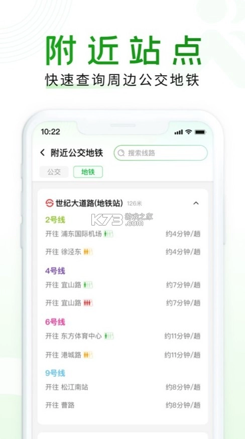 提供实时公交和地铁到站时间信息,同步展示地铁舒适度。