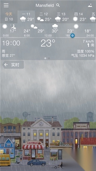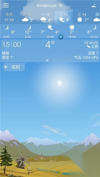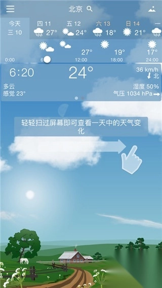 3、但是最奇妙的是你可以提前预知未来的天气。 只需轻轻扫过屏幕,你就可以看见一天之中的天气变化。当然你可以看见当前的天气以及今天到未来几天的天气预报。