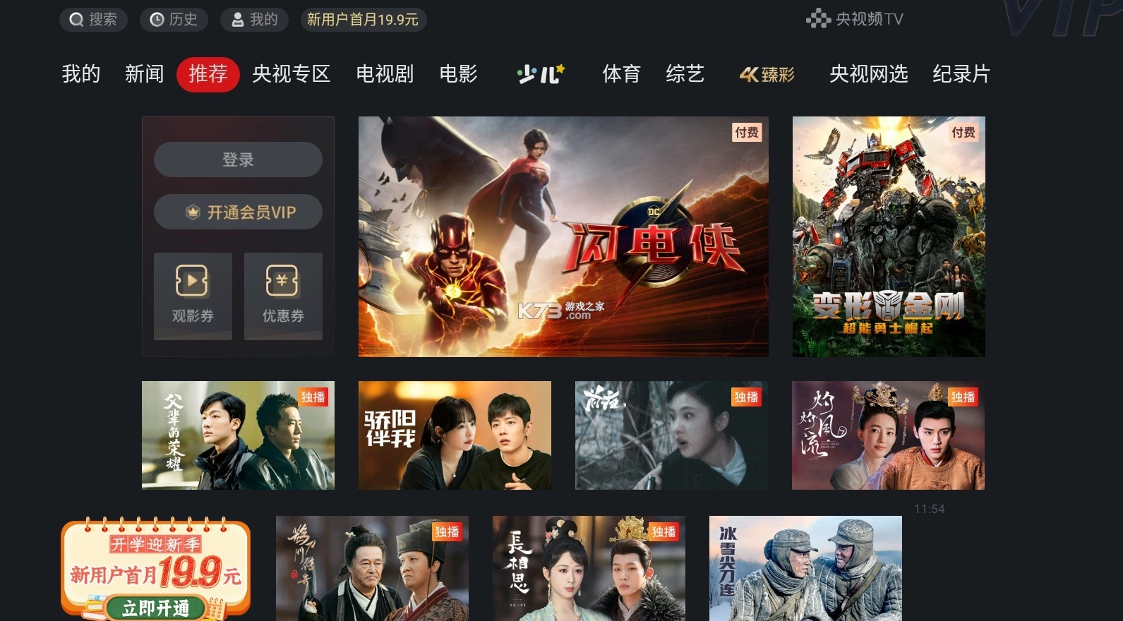 全面覆盖不管你想观看哪个平台的视频,《央视频电视版》版都能满足你。播放视频,各大平台 VIP 视频一样能够观看,让你的观影体验更加自由。