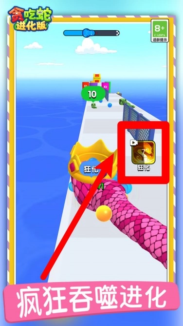 2. 轻点右侧的强化技能按钮,即可瞬间进入狂化状态,在短时间内实现吞噬量的爆发式增长,进而让成长效率得到大幅提升。