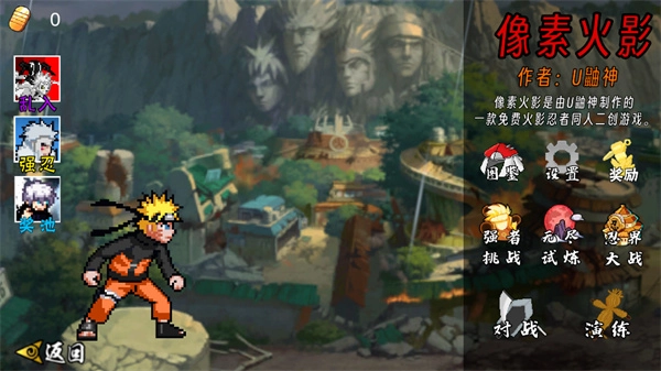 1. 以像素风格精心打造的火影忍者同人手游,带来别具一格的横版格斗玩法。