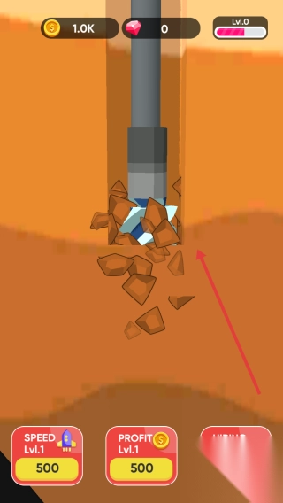 1. 操作钻头,挖掘橙色土层,破碎矿石,积攒1.0K金币,将SPEED/PROFIT从Lv.1提升至Lv.2 。