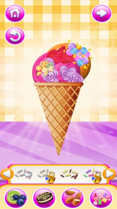 游戏明快的色彩搭配与轻快的背景音乐相得益彰,共同营造出欢乐愉悦的制作氛围。从简单的基础甜筒制作,到充满创意的圣代打造,难度设计充分考虑到各年龄段玩家的需求,无论你是小朋友还是成年人,都能尽情享受其中。