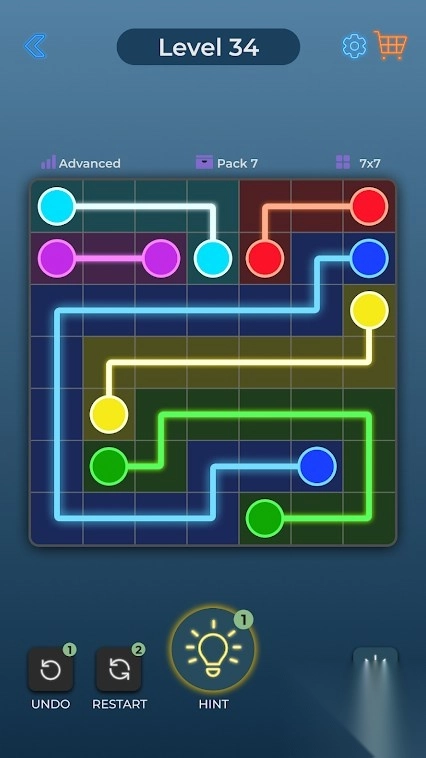 1. 玩家要通过绘制线条来连接相同颜色的圆点,所绘制的线路既不能交叉,也不能重叠,同时,线条会占据其经过的格子。