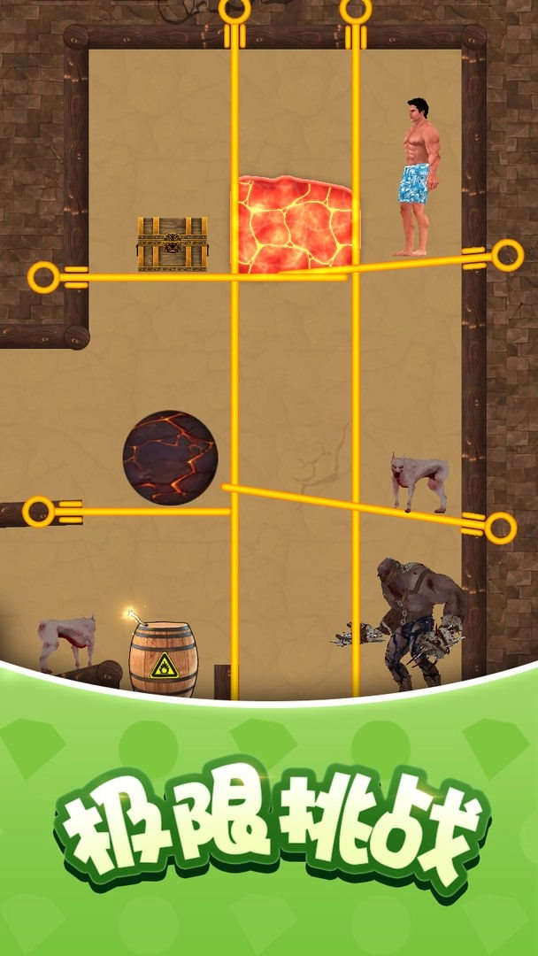 所幸此地存在可利用的地形,只需移动插销来改变地形,所有难题便能迎刃而解。快开动你的脑筋,开启生存闯关之旅吧!