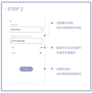 1、设置事件名称、目标日期等相关信息;