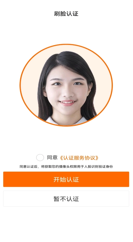 请将脸部正面朝向屏幕,并确保脸部完全处于识别框之中,随后完成眨眼动作,以进行认证。