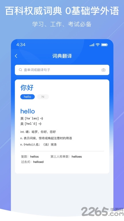 2、具备专业的英语学习功能,能帮助用户进行各类单词解析以及口语检测。