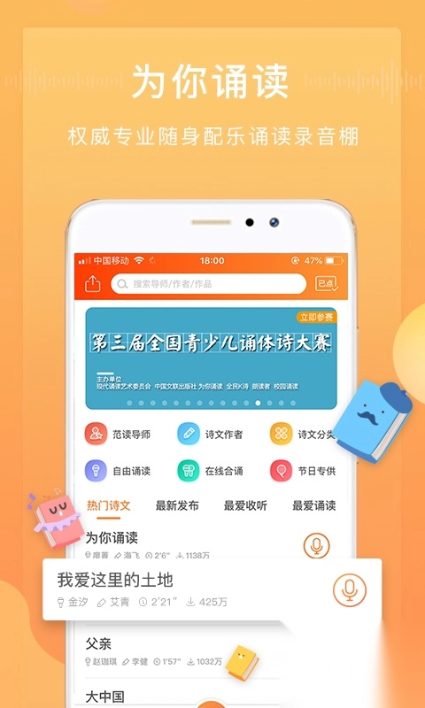 1、为用户打造轻松赚钱体验的配乐诵读社区