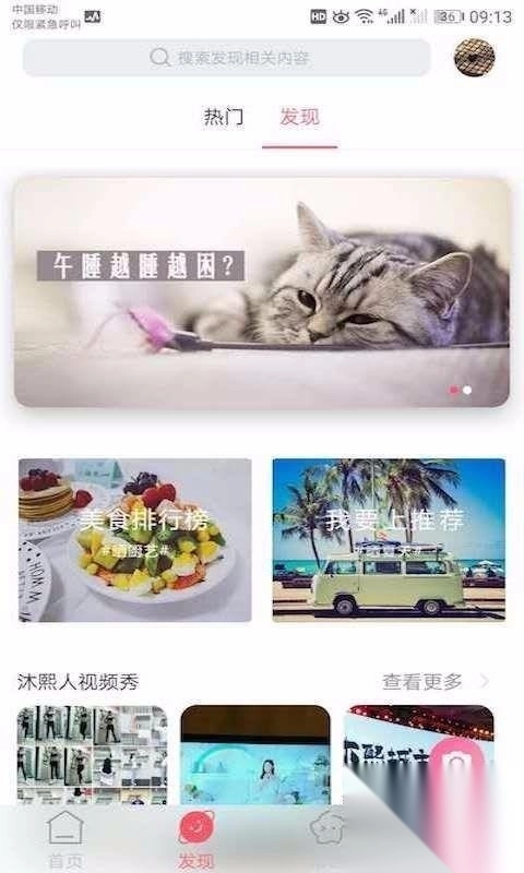 3、选择发现,查看网友们发布的精美文章,如美食排行、达人视频等