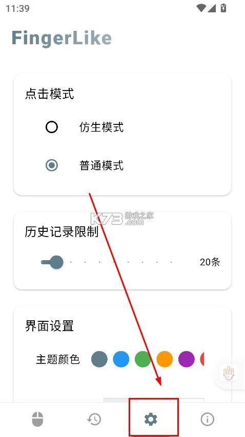 6.点击设置按钮,可以进行点击模式的设置,进行界面的设置。