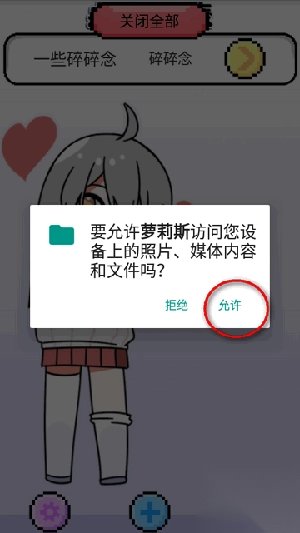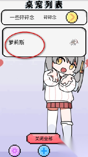 与她说话。萝莉丝的正上方会显示“和桌宠说”的按键,每次会随机刷新几句对话,玩家可以选择其中一句对话并发送给她。萝莉丝收到后会回应玩家,同时随机增加/降低部分数值。