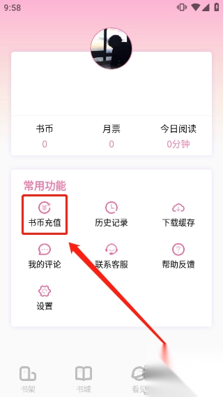 5、在此即可充值书币,充值兑换比例为1元=100书币