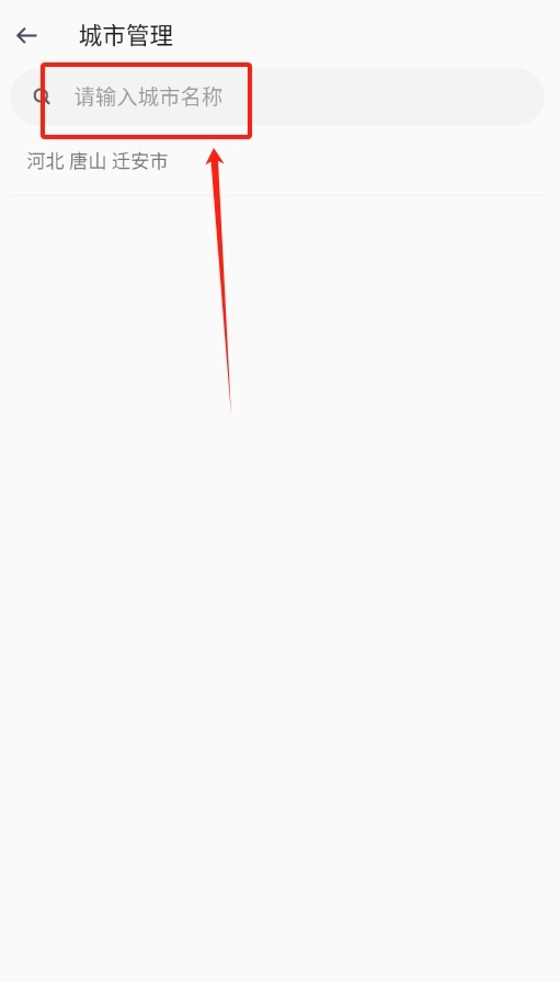 2、在弹出的搜索框中输入你想要添加的城市名称,这样就能查看该城市的天气情况。