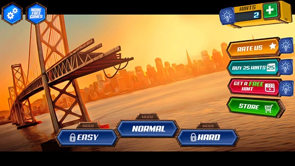 3、能够持续解锁更多关卡,让你的桥梁建造体验缤纷多彩。