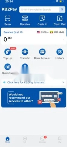 提供官方账号:官方账号可在KBZPay的消息页面下找到,作为一个信息中心,用户可以访问各种文章;