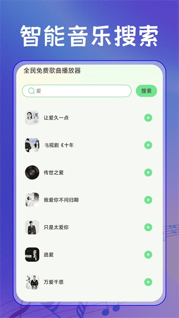 全民免费歌曲播放器,是音乐爱好者的绝佳选择!它支持主流音频格式,无需转换即可播放,全面扫描手机中的音频文件,方便用户快速找到想听的音乐。