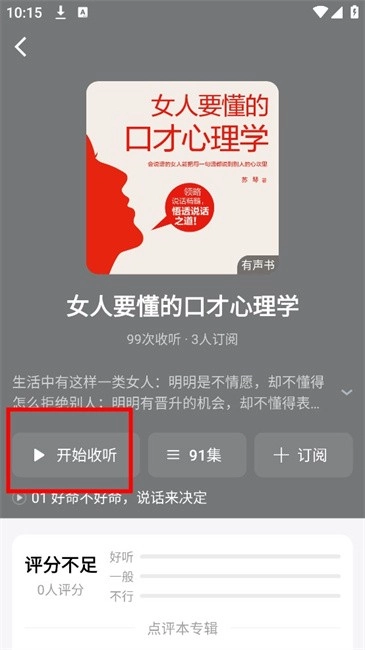 4. 点击进入你感兴趣的作品,然后单击“开始收听”,就能播放了。