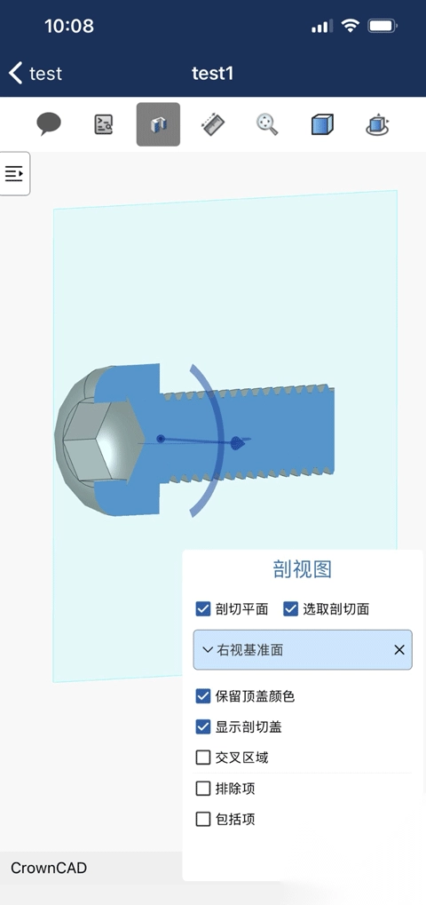 特征面板:显示当前零件的组成、基准面、建模特征,用户可选择特征的显隐。APP中暂不支持对零件的编辑,若想编辑零件,通过浏览器端实现零件的编辑。