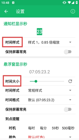 3、回到主界面,挑选【悬浮窗显示秒】【通知栏显示秒】等呈现方式。