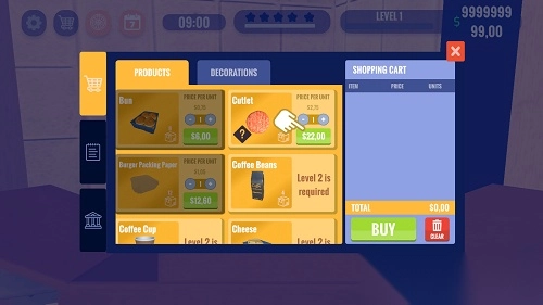 《汉堡餐厅模拟器3D》(Burger Restaurant Simulator 3D)营造出极为逼真的快餐店模拟经营场景。在游戏中,你将以第一人称视角,化身这家快餐店的员工,从食材采购,到各类美食制作、店铺运营服务,全部由你亲自操办。快来从零起步,打造专属于你的快餐店,用心管理并不断拓展你的事业版图吧!