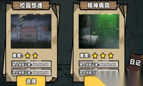 2)有校园惊魂和精神病院两大模式选择,以精神病院为例,点击进入选择单人,或者双人模式,