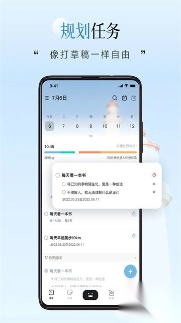 自律自强APP是一款极为专业的日程管理软件,每天都能添加专属于你的小目标。这款软件集合了时间管理、计时器、记事本、备忘录、日历等丰富功能,助力你提升效率,合理规划每日时间。你还能通过设定多个闹钟、重复提醒等几种自定义方式,从此不再错过任何事。有需要的朋友,快来下载体验吧!