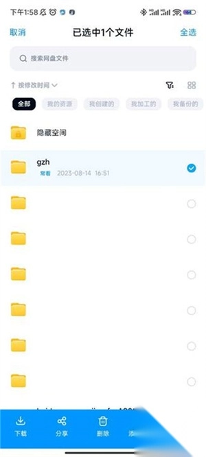 1、第一中方法非常简单,就是选择自己所要分享的文件,选择下面的分享;