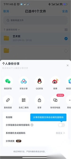 密享:可选择访问的人数、有效期,可复制链接,也可QQ、微信进行分享。