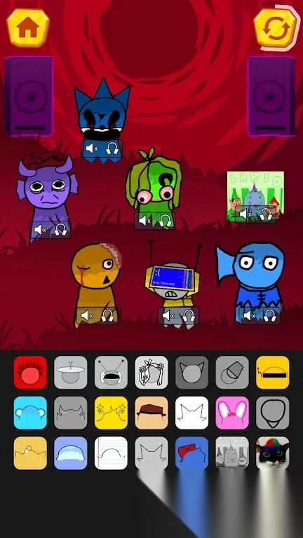 节奏盒子恐怖音乐引领你踏入Sprunki Horror Beats: Scary Music的奇妙天地。在这个满是音乐与节奏交织的世界中,你能接触到丰富多样的角色。只需把特色图标、装饰物之类的拖放到不同角色身上,即刻就能触发形形色色的音乐元素。如此简单的操作,却能让你实现原创度与自由度爆表的音乐组合创作,你可以尽情释放自己的想象力与创造力。