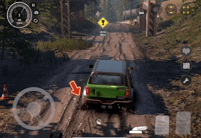 1. 驾驶车辆,观察其在泥路上的行驶效果。