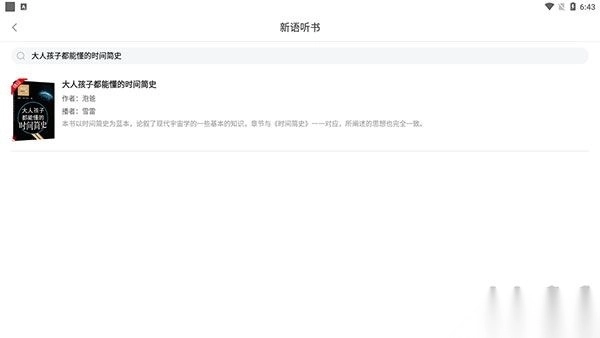2、听书资源丰富,想听什么书,搜一下马上就能找到。