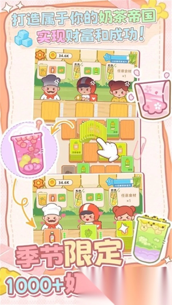 2. 采用卡牌合成式的原料制作方式,你能够体验到将卡牌相互结合,进而制作出各类充满惊喜的奶茶品种的乐趣。