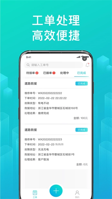 在同一页面为您呈现新工单、处理中工单以及历史工单,方便维修师傅随时随地轻松接单,快捷处理各类工单事务。