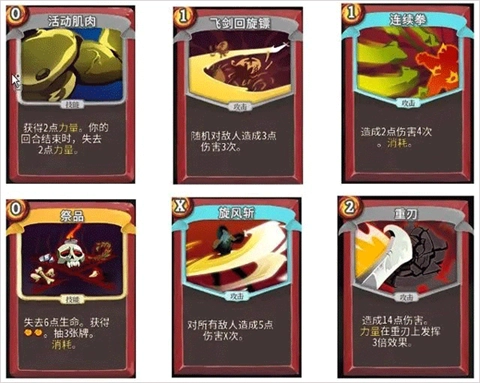 重刃:力量战中最强的单体攻击牌,拥有5倍力量加成,可以轻松打出100+伤害。
