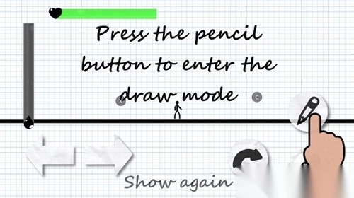 点击铅笔按钮,即可暂停游戏并切换至绘画模式。在该模式下,你可以绘制任何有助于控制火柴人跨越障碍、继续前行的物品。倘若绘画时出现不需要的物件,点击橡皮擦按钮进入擦拭模式,把橡皮擦置于要去除的位置,双击即可擦除涂鸦。