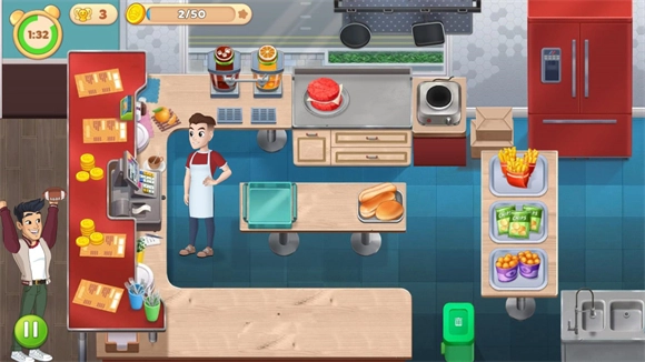 4、按照顾客的订单,为其供应相应的食物,订单完成后,会在柜台上留存金币。